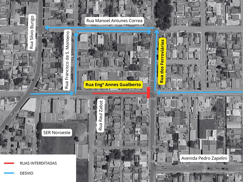 -Sentido Centro/Oficinas: o trajeto alternativo será pelas ruas dos Ferroviários e Manoel Antunes Corrêa.