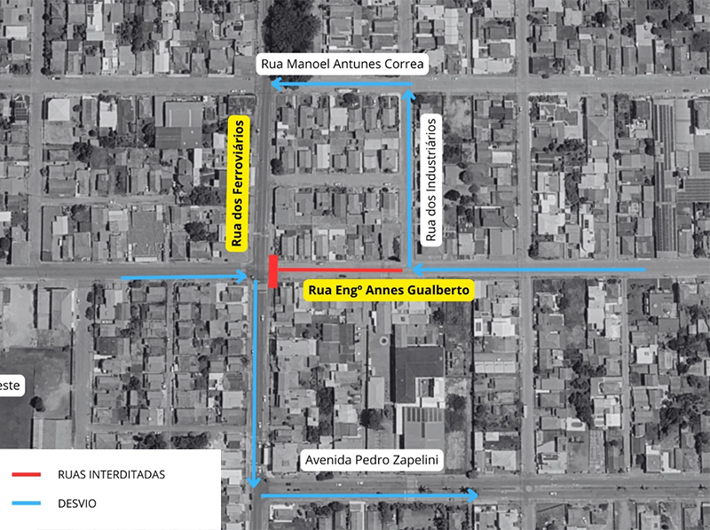 -Sentido Centro/Oficinas: O trajeto alternativo será pelas ruas dos Industriários e Manoel Antunes Corrêa.